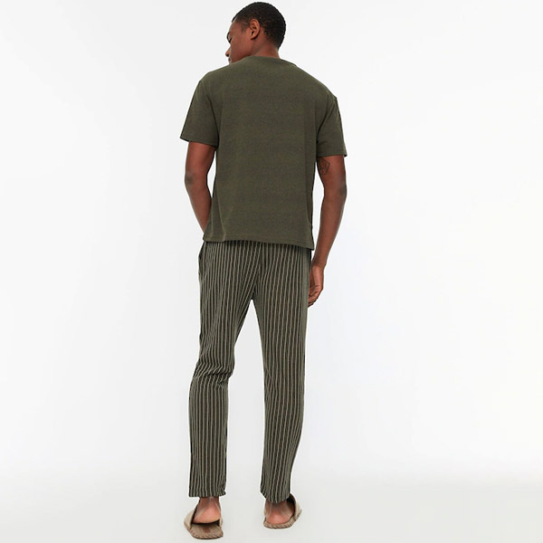 Men Khaki & Grey Pure Cotton Typography Print Pyjama Set